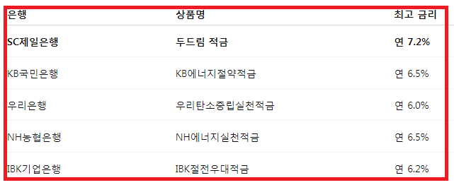 2025년 기준, 여러 시중은행이 이 정책에 동참하여 다양한 이름의 에너지 절약 적금을 선보였습니다. 기본 구조는 유사하지만, 세부 우대조건이나 제휴 프로그램, 추가 혜택에서 차이가 있습니다.