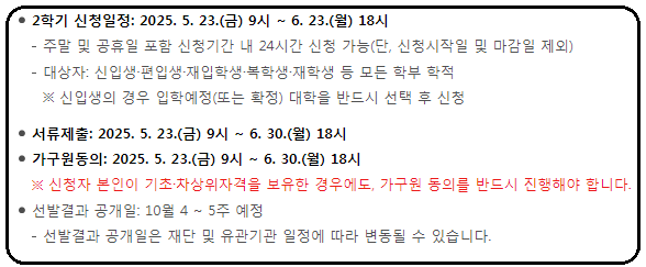 2025년 2학기 1차 신청 기간은 5월 23일(목)부터 6월 23일(일)까지이며, 기간 내 접수를 완료해야만 실제 지급 대상에 포함될 수 있습니다.